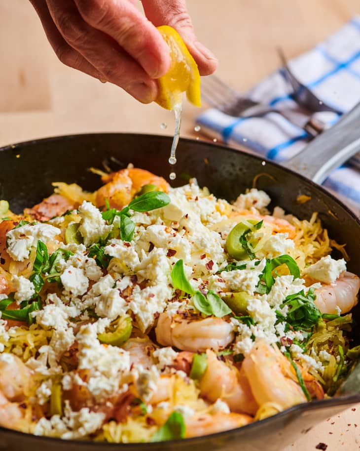 Mediterranean Spaghetti Squash With Shrimp Olives And Feta Kitchn Recipes For Spaghetti Squash And Shrimp